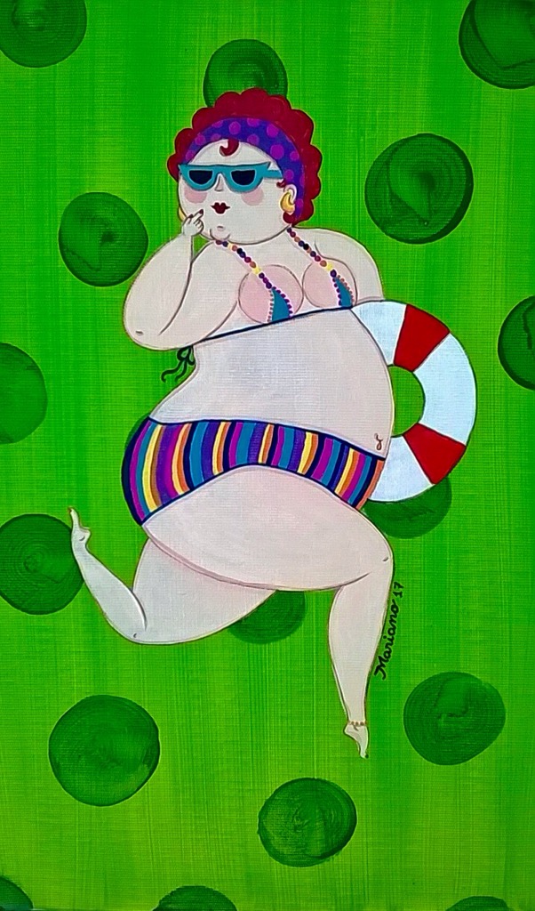 Em 2008 foi um ano difícil. Muitas perdas consecutivas, o trabalho era um inferno, o casamento outro inferno, a única coisa que me mantinha de pé era ser mãe. Mas como ele já era adolescente e não precisava tanto de mim, eu me mantive sentada, pintando para respirar. Eu cresci vendo mãe e tio pintando, mas sabia que aquilo “não era profissão”. Sempre pintei como hobby, no pouquíssimo tempo que me restava, mas depois de pintar eu destruia, rasgava e jogava fora meus desenhos e pinturas, porque eles eram só meus, eram feios, imperfeito, infantis. Eu não aceitava e não queria me expor pela minha feiura, as minhas imperfeições, fragilidades.