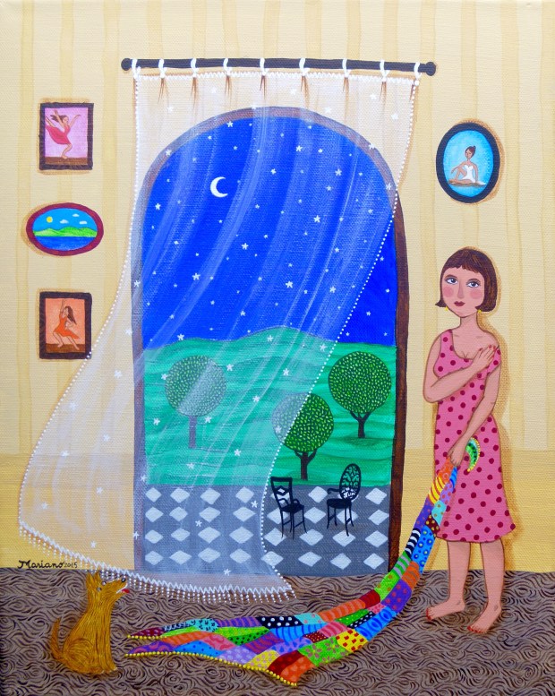 Title: Feeling marvellous, acrylics on canvas, 2015 – can be seen and purchased at http://www.galleriamaria.fi