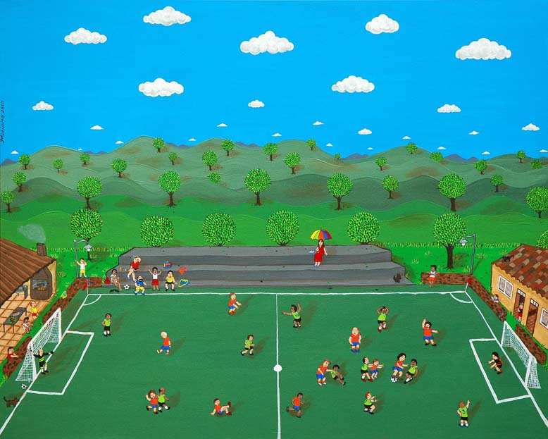 Adriana wanted to give Hajar a present that would, like their friendship, resist through time and distance… So she asked me to paint something that would play with their friendship memories. That way, they will never really be apart, and they will be reminded of the upcoming day when they will , once again, meet, play and be merry!