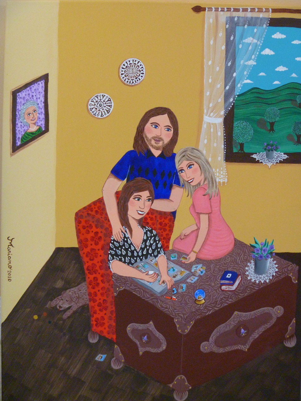 Adriana wanted to give Hajar a present that would, like their friendship, resist through time and distance… So she asked me to paint something that would play with their friendship memories. That way, they will never really be apart, and they will be reminded of the upcoming day when they will , once again, meet, play and be merry!