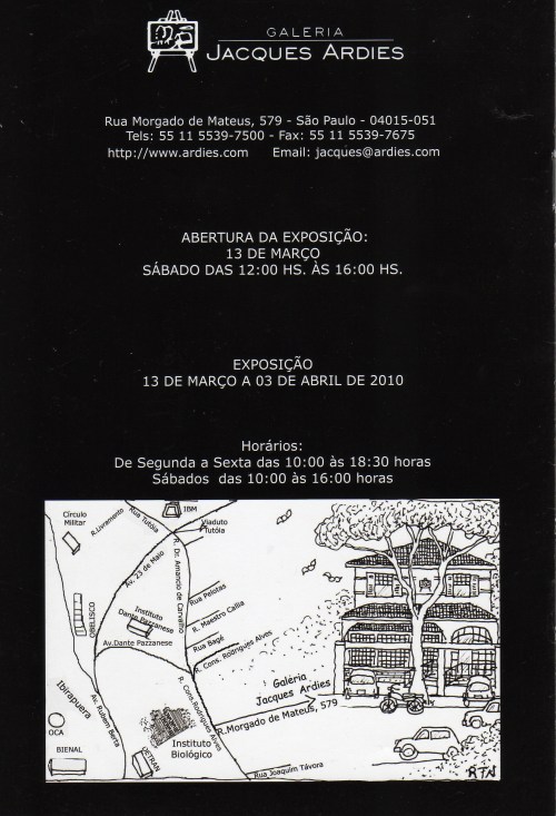 Local: Galeria Jacques Ardies – Rua Morgado de Mateus, 579 – Vila Mariana