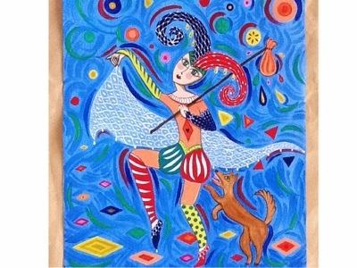 The fool dresses up, but brings along only the absolutely necessary. On his long journey, he will carry much more than his few material belongings. He will carry himself, his fears, the heavy weight of his thoughts. The dog calls his attention towards the pain, it doesn’t intend to deliberately cause it or hurt him. It wants the fool to give himself in and fully understand the now, pay attention to the only-so-right-now that is all that there is. Past is an abyss, future is an illusion and the trip, this obligatory adventure, is only a fantasy, a colorful costume that plays with dust and wind. It accumulates, it ages, it gets ripped out and yet, it doesn’t bring or leave any traces behind.